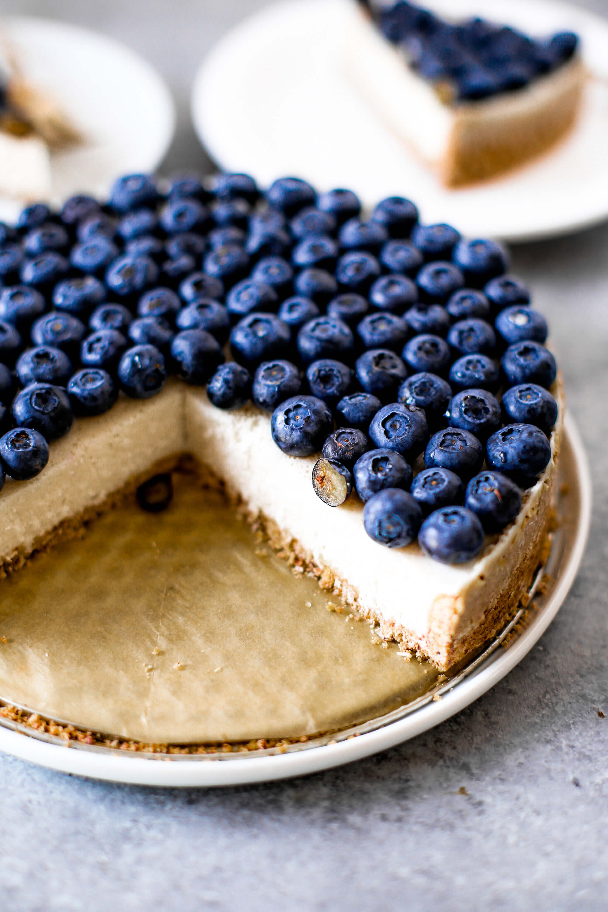 Blueberry creamy pie made with dairy-free coconut cream filling and homemade paleo coconut flour crust. Fresh and easy summer dessert topped with plenty of fresh blueberries! An easy paleo blueberry cream pie recipe. #pie #baking #recipes #paleo #cooking #dessert